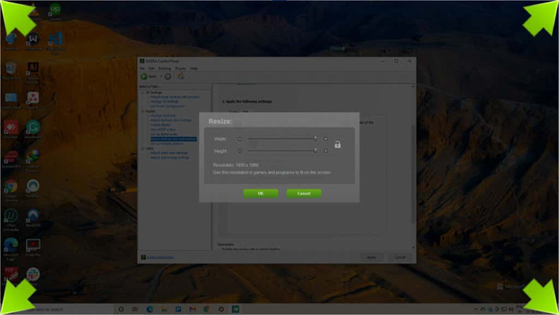 - Step 4: Then, select “Resize” and drag the sliders to fit your desktop onto the TV screen.