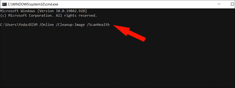 - In the Command Prompt, type “DISM /Online /Cleanup-Image /ScanHealth”, press “OK” and wait for Windows to finish its job.