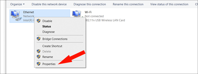 and then go to Ethernet or Wi-Fi, depending on the connection type that you are using.