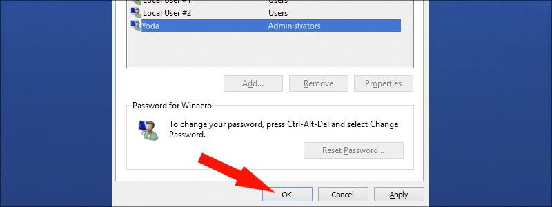 - In the newly opened window, select the username for which you no longer want to use a password, uncheck the square next to “User must enter a user name and password to use this computer”