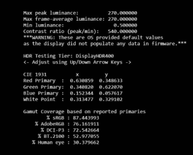 The following is a summary of what you will see. The Max peak luminance determines the nits rating for your screen. This will not be exact, but the discrepancy will not exceed 50 nits.