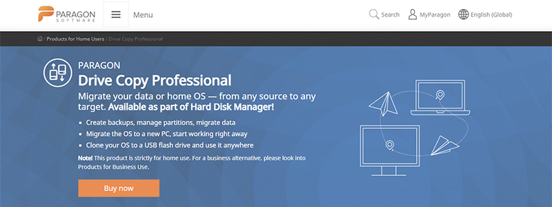 If you’re looking for the paragon of cloning software, it doesn’t get much better than Paragon Drive Copy (pun intended). Joke aside, Drive Copy is yet another excellent cloning tool which is actually a small part of Paragon’s comprehensive disk management utility suite, namely the Hard Disk Manager. However, if you only want to clone your drive, you will end up saving money in the process by buying Drive Copy only instead of the whole suite.