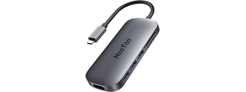 This is arguably the last USB hub that you’ll ever need. Why? Well, the HooToo has it all: 7 ports available, including the latest USB Type C, 100 W PD charging ports, a 4K HDMI Port, SD and TF card reader, and 3 USB 3.0 ports.