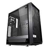 Thermaltake V150 supports Mini ITX and Micro ATX motherboard; it is capable of holding graphics cards that are up to 350mm in length and it offers very good front panel connectivity that includes: audio jack, one USB3.0 port, and two USB2.0 ports. Moreover, it has a sturdy build and comes fitted with two tempered glass panels (left and front) that, when combined with the proper RGB lighting, really make a difference and transform this already attractive piece of hardware into a real masterpiece.